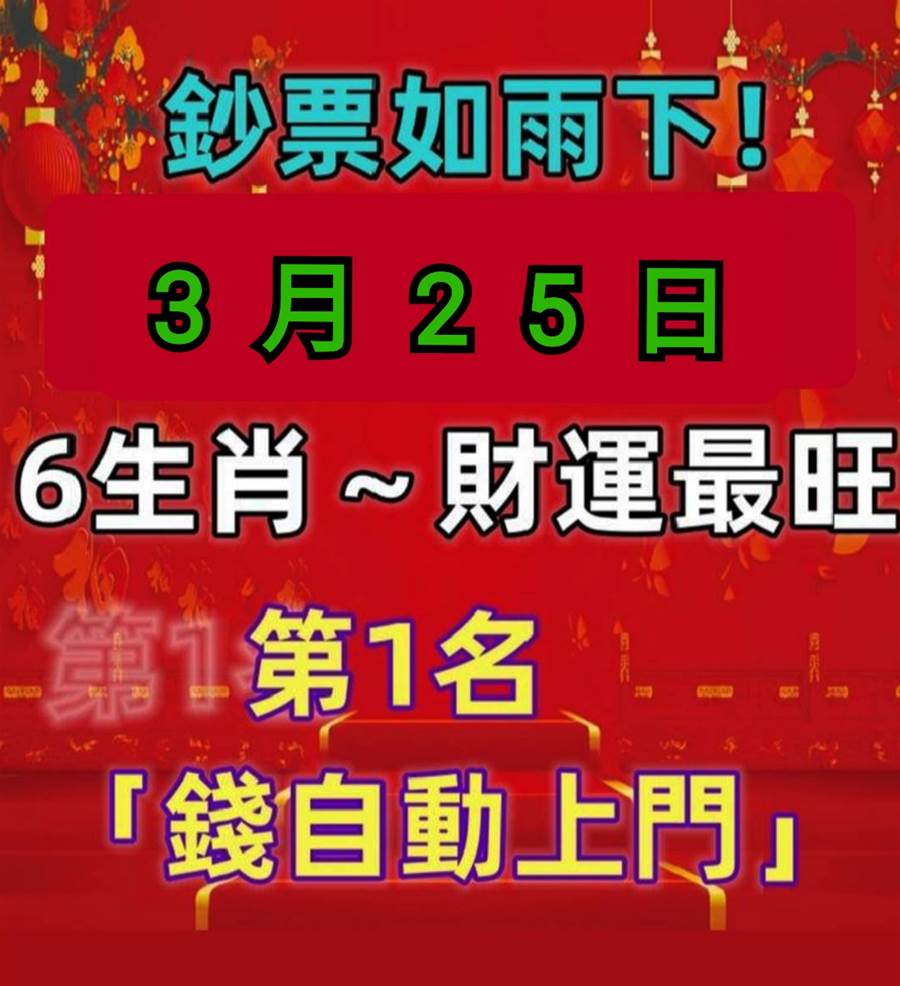 今日3月25日,運勢最好的六大生肖,上榜生肖請接財!!