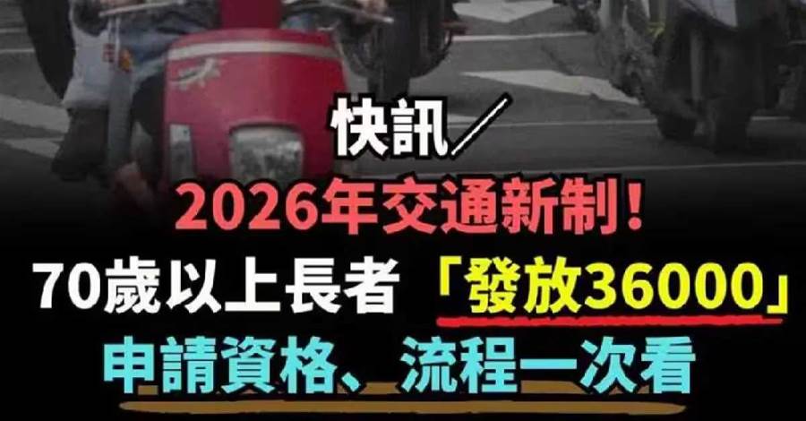 快訊/2026年交通新制! 70歲以上長者「發放36000」 申請資格、流程一次看
