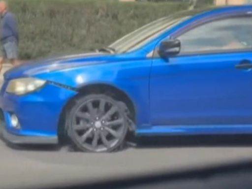 嘎啦嘎啦! 無視爆胎硬要開 民眾看傻「用生命開車」
