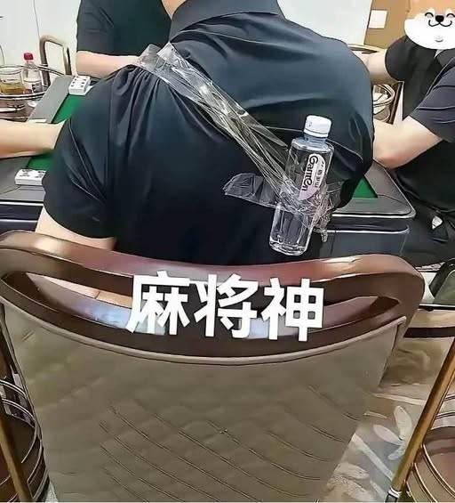 家人們誰懂啊!昨晚下樓買夜宵,路過巷口麻將館,隔著玻璃門就被一幕硬核操作震住:一位大哥光著膀子,脊樑上橫七豎八纏著透明膠帶,膠帶里竟死死固定著一瓶 550 ml 的礦泉水。