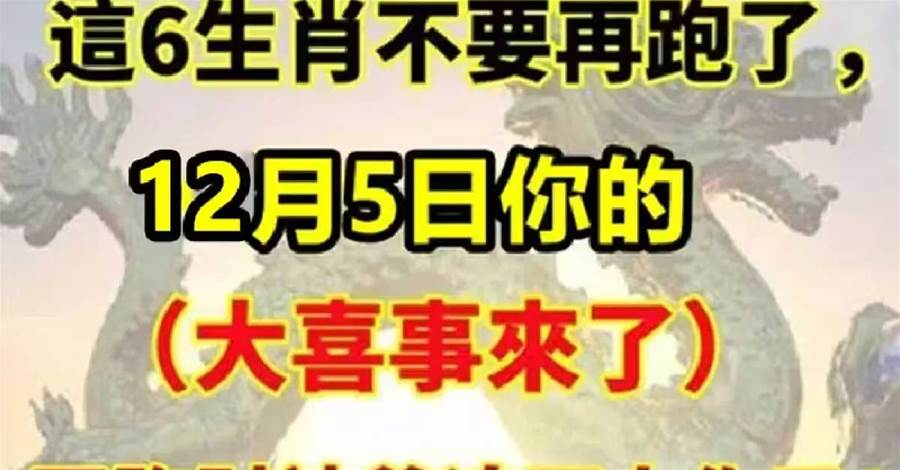 這六大生肖不要再跑了,12月5日你的(大喜事)來了 ,再跑財神爺追不上你了