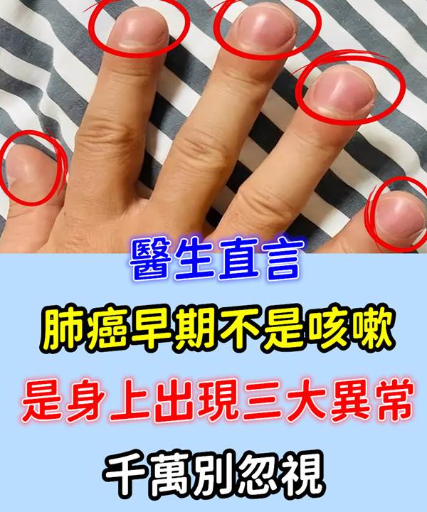 醫生們近來就提醒,身上如果出現某些異常,千萬別輕易忽略,因為它們可能是肺部在發出求救信號。
