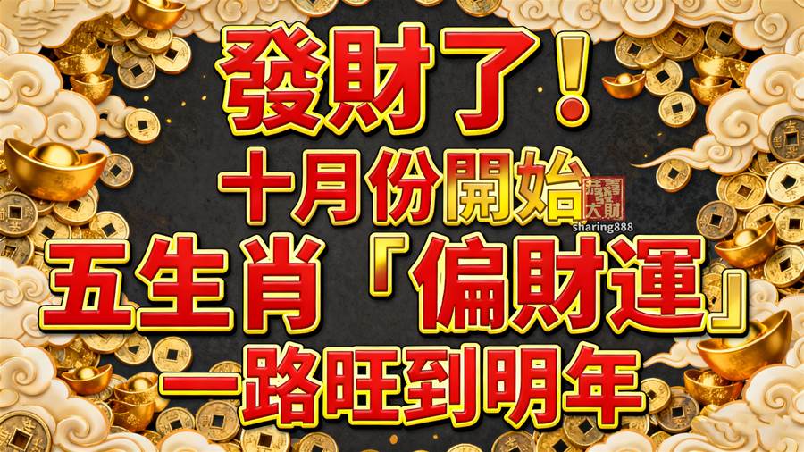 在這個黃金月份裡,有五大生肖將會被點名,迎來一波又一波的偏財運和橫財運。