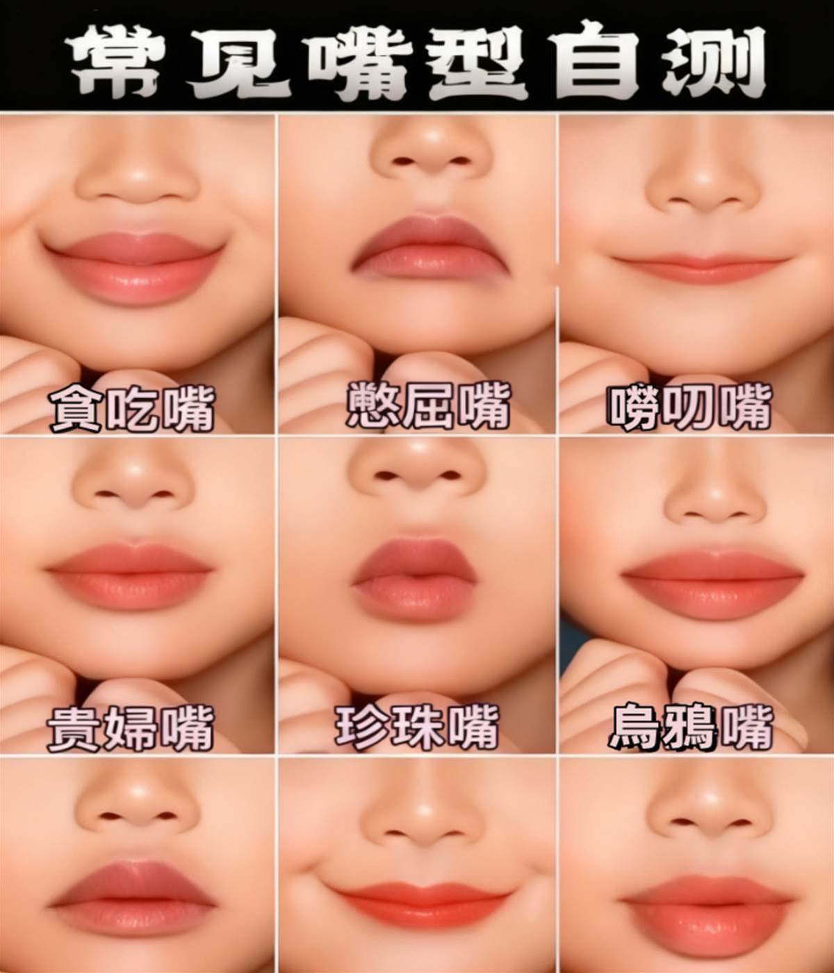嘴唇不僅是五官中的重要部位,更在面相學中被視為洞察一個人性格與命運的視窗。傳統面相學認為,不同的唇形蘊含著不同的命運密碼,這並非無稽之談,而是千百年來人們對人相觀察的智慧結晶。近日一份「常見嘴型自測」圖在網路上引發熱議,詳細解析了九種唇形背後隱藏的性格特徵與命運走向。