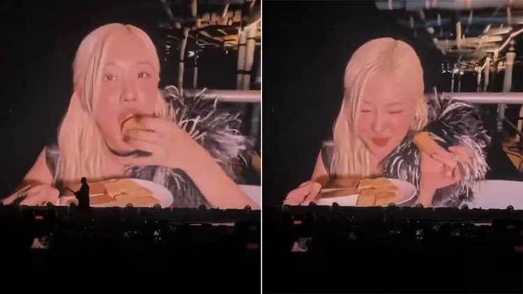 南韓女團BLACKPINK巡演首站在高雄開唱,ROSÉ在後台吃鳳梨酥的畫面引粉絲注意。