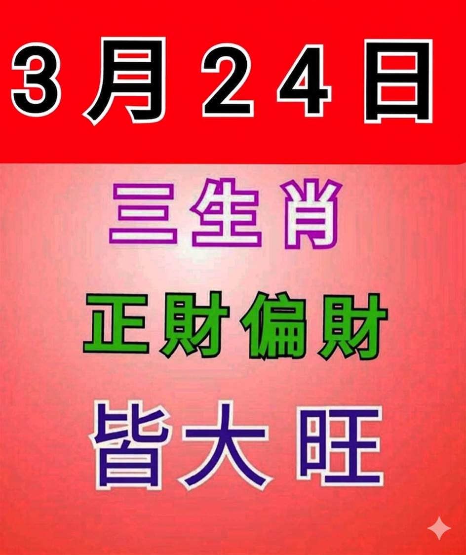 3月24日 三生肖 正財偏財「 皆大旺 」