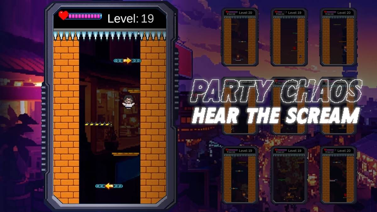 《FallingBattle》以簡單易上手的「向下生存」為主軸,玩家需在快速往下墜落的同時避開陷阱、平台機關與其他玩家的攻擊。