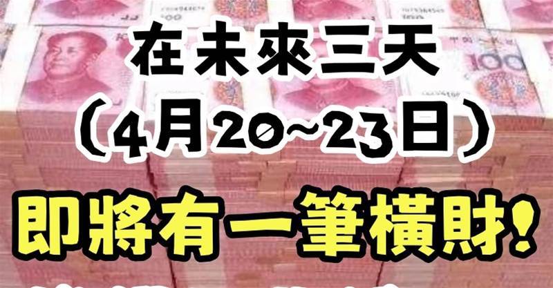 「 明天 4月 20號 」 三生肖 橫財最旺