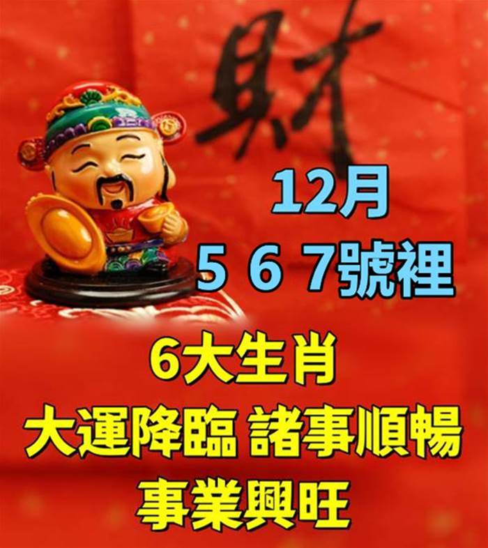 六大生肖運勢飄紅:12月6號偏財旺,7號發橫財,8號中頭獎