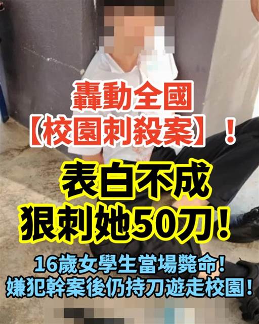轟動全國【校園刺殺案】!表白不成狠刺她50刀!16歲女學生當場斃命!嫌犯幹案後仍持刀遊走校園!!