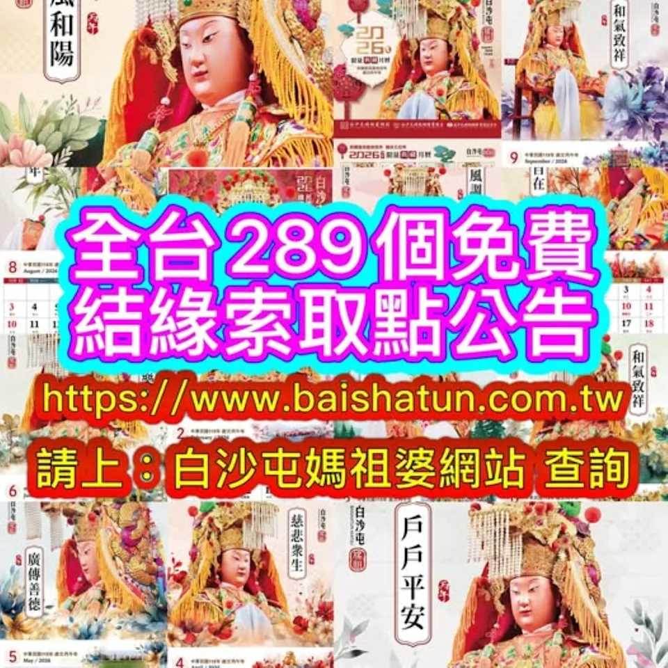 白沙屯媽祖婆網站公布全國289個免費索取地點,外縣市要免費索取,可上白沙屯媽祖婆網站查詢。