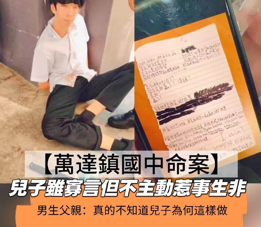 【萬達鎮國中命案】 兒子雖寡言但不主動惹事生非 男生父親:真的不知道兒子為何這樣做