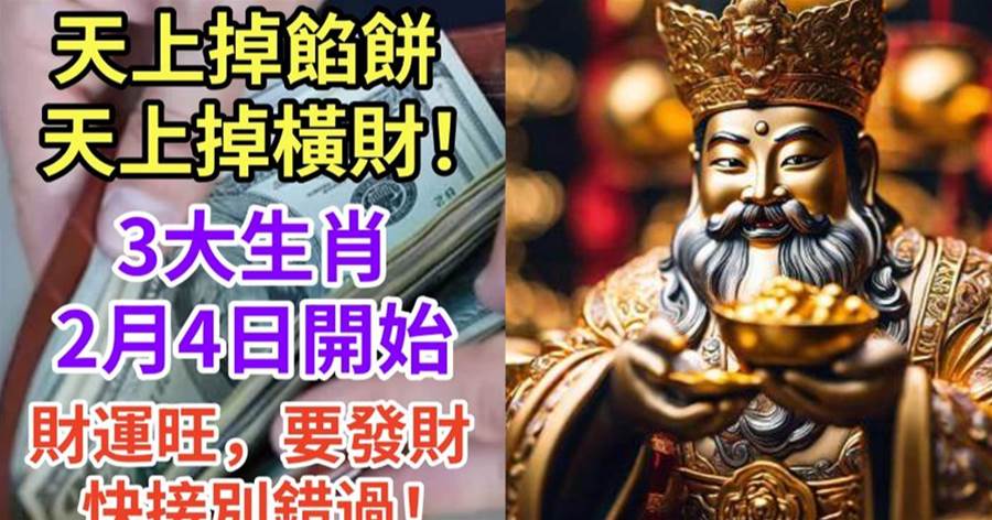 天上掉餡餅,天上掉橫財!3大生肖 2月4日開始 財運旺,要發財,快接別錯過!