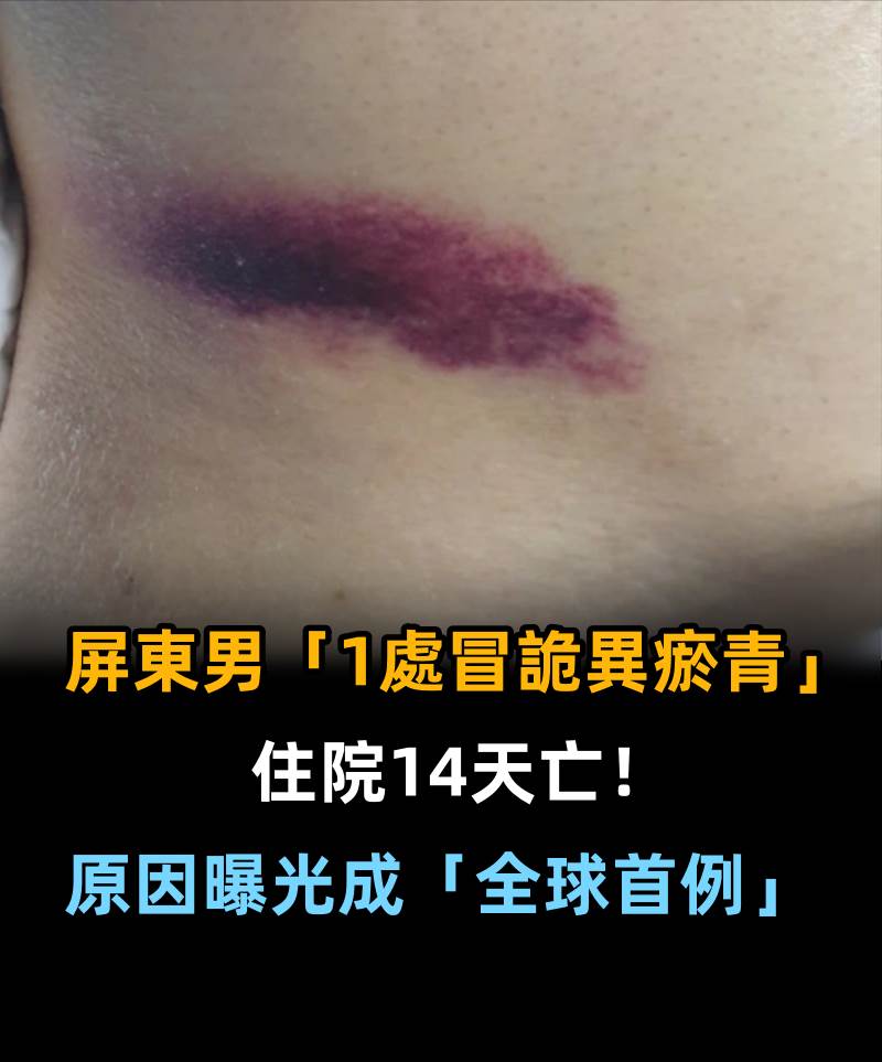 屏東男「1處冒詭異瘀青」住院14天亡!原因曝光成「全球首例」