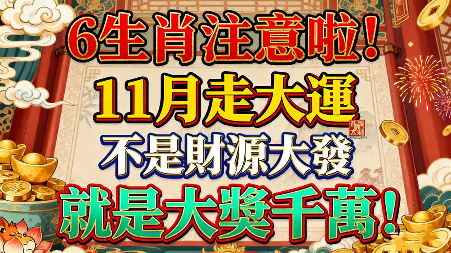 6生肖注意啦!11月走大運,不是財源大發,就是大獎千萬!
