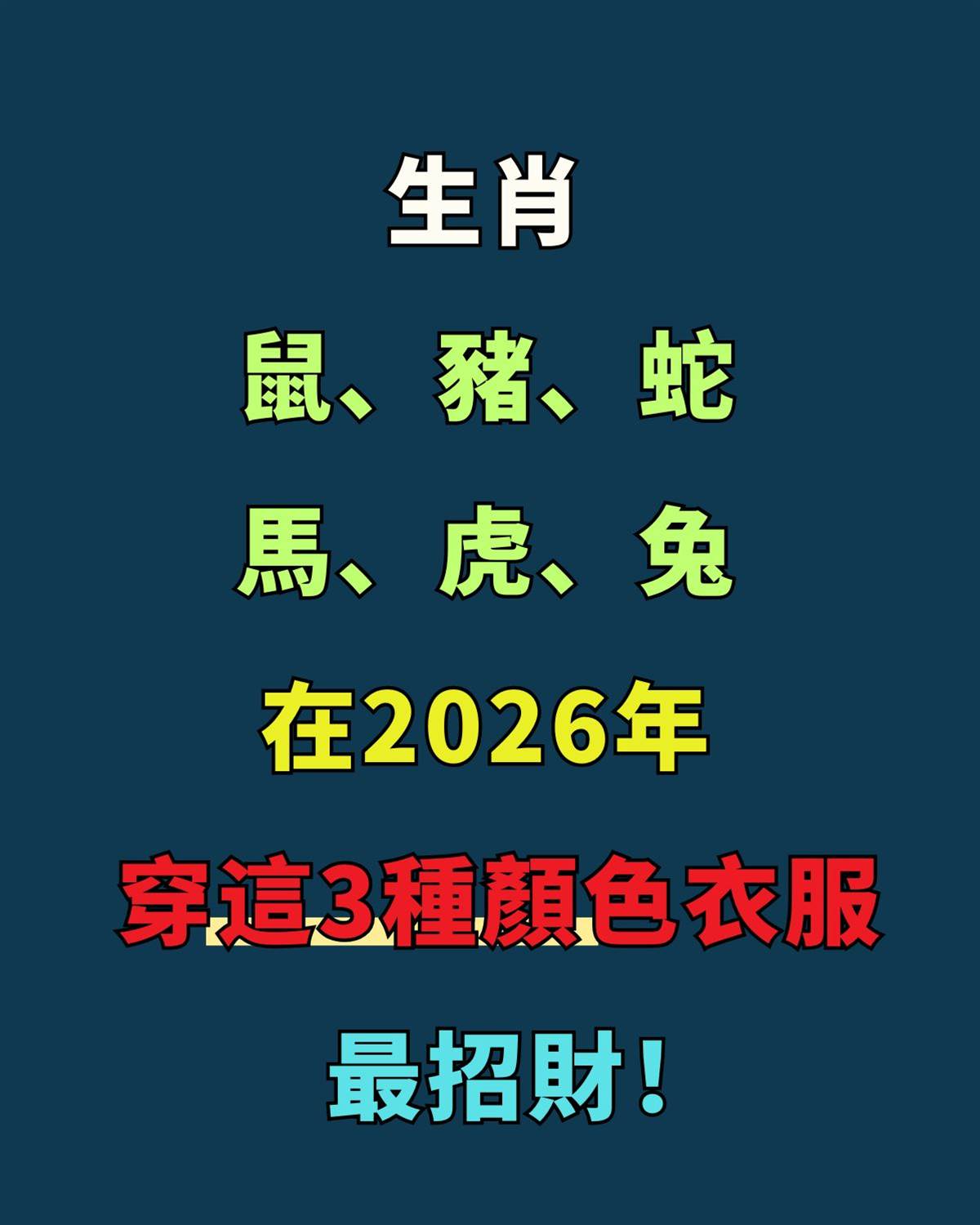 生肖鼠、豬、蛇、馬、虎、兔,在2026年穿這3種顏色衣服最招財!