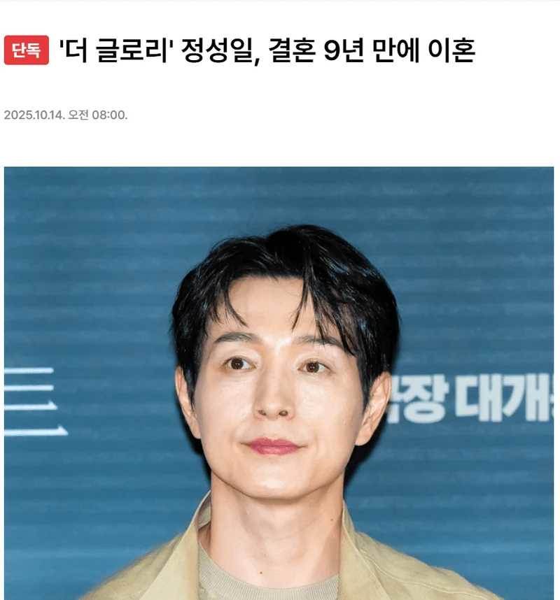 Netflix現象級韓劇《黑暗榮耀》讓許多演員一夕爆紅,其中飾演富豪丈夫「河道英」的鄭星一,以溫文爾雅又壓抑的演技獲得大贊。然而,今(14)日韓媒YTN Star爆出他婚姻觸礁、已與妻子結束9年婚姻的消息,震撼整個演藝圈。