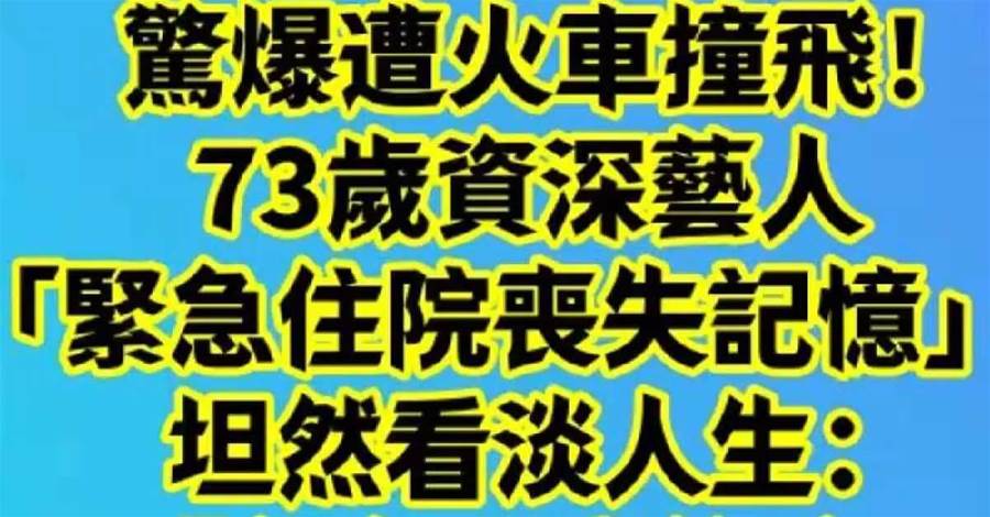 驚爆遭火車撞飛!73歲資深藝人「緊急住院喪失記憶」 坦然看淡人生:「有人唱我的歌就滿足了...」