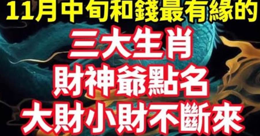 11月中旬和錢最有緣的三大生肖,財神爺點名,大財小財不斷來