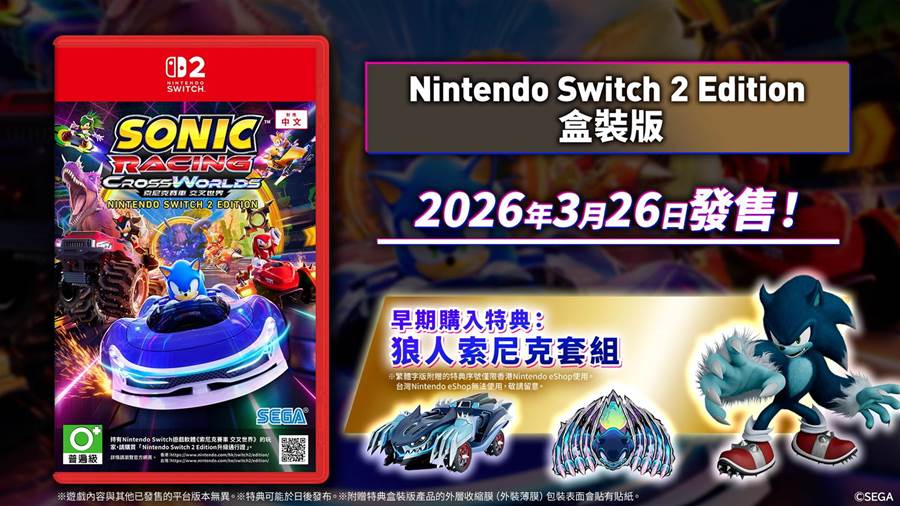 22,《索尼克賽車 交叉世界》確定發售 Switch 2 盒裝版
