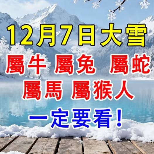 12月7日大雪「屬牛 屬兔 屬蛇 屬馬 屬猴人」一定要看!