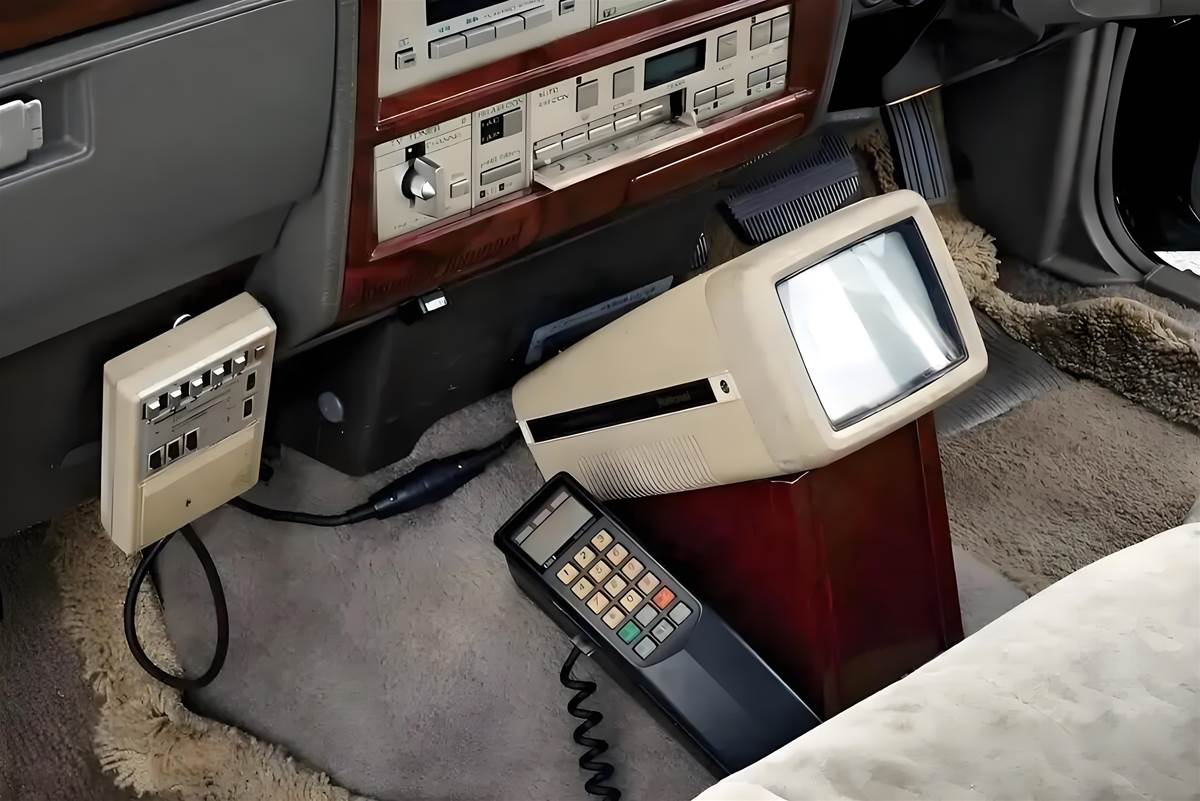 一坐進車內,瞬間穿越到 80 年代科幻電影場景!中控台按鍵密密麻麻乍看眼花,但排列得相當整齊,頗有老式音響控制面板的韻味。最驚奇的是那台小彩色電視,40 年過去插電仍能播放,搭配厚絨布座椅,有著現代大螢幕沒有的溫馨感。