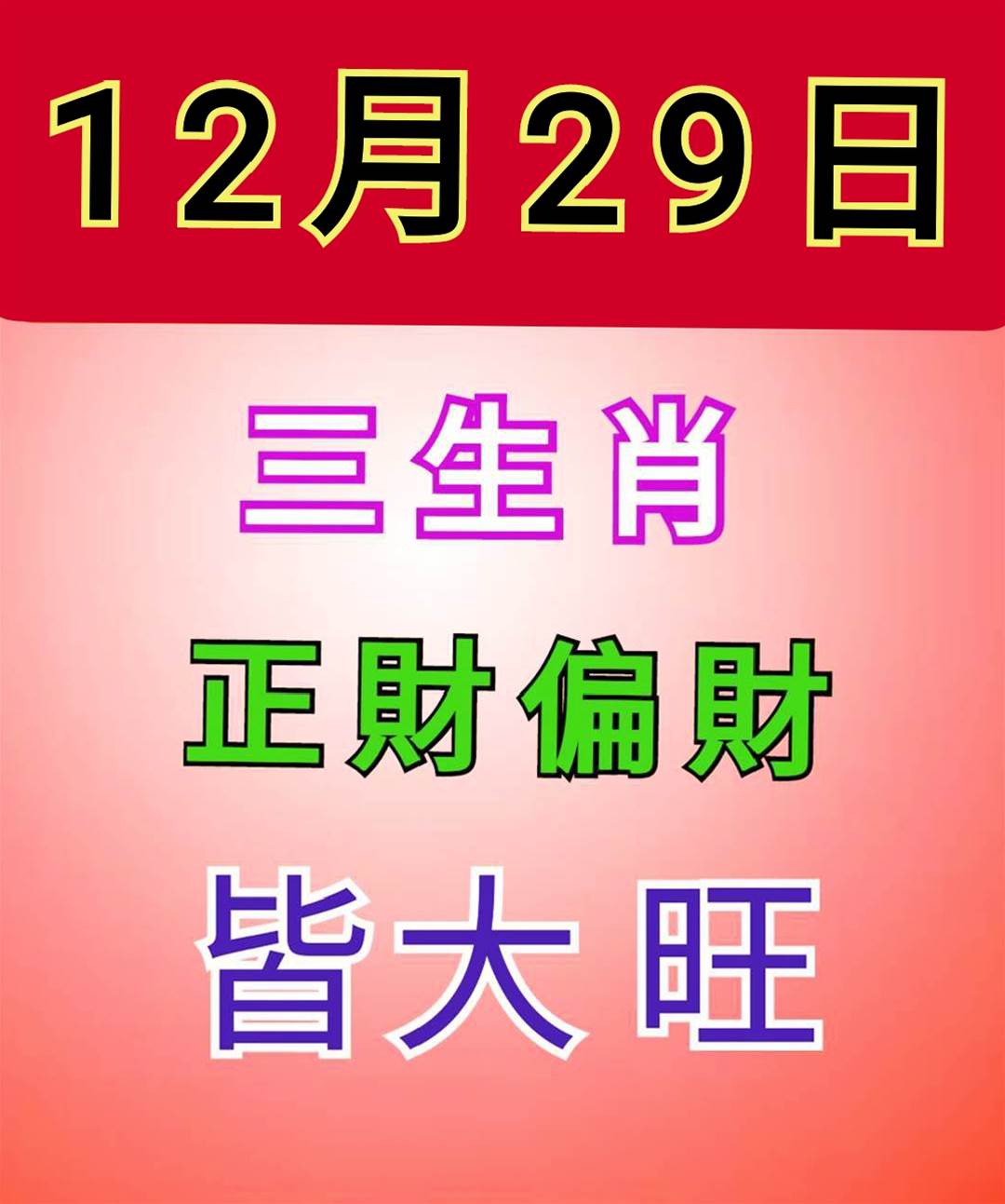 12月29日 - 31日 六大生肖 偏財最旺 福滿門