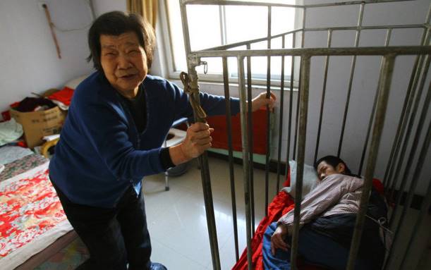 彭外妹的兒子怎麼了,為什麼要像動物一樣被關在鐵籠裡呢?