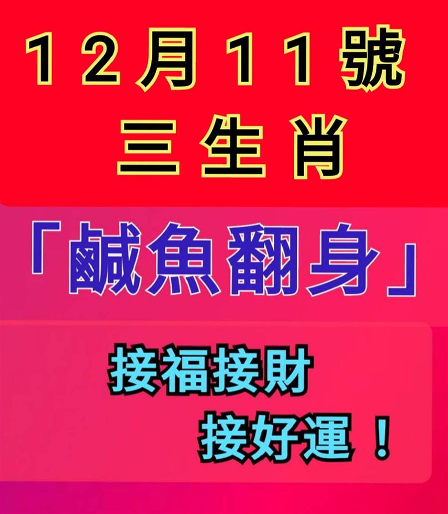 12月11號 三生肖 「 咸魚翻身 」 接福接財接好運