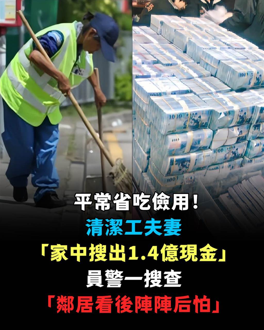 平常省吃儉用!清潔工夫妻「家中搜出1.4億現金」員警一搜查「鄰居陣陣后怕」