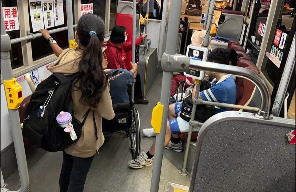日前潔媽在臉書發文分享搭公車看到的暖心畫面,她在台中高鐵站附近搭車時,公車司機推著坐輪椅、獨自出行的老先生上車,司機特地將輪椅斜放,應該是擔心輪椅沒有固定,這樣比較不會在車子行進時滑動。潔媽說,當時老先生努力調整方向,好讓雙手能抓緊兩側把手,一旁的歐巴桑熱心問「你這樣抓得穩嗎,要不要幫你?