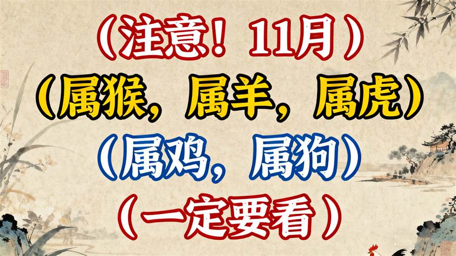 注意!11月屬猴、屬羊、屬虎、屬雞、屬狗一定要看!