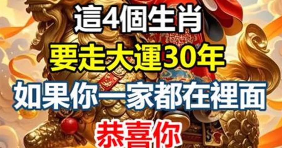 十二生肖中,這4個生肖要走大運30年,如果你一家三口都在裡面,恭喜你!