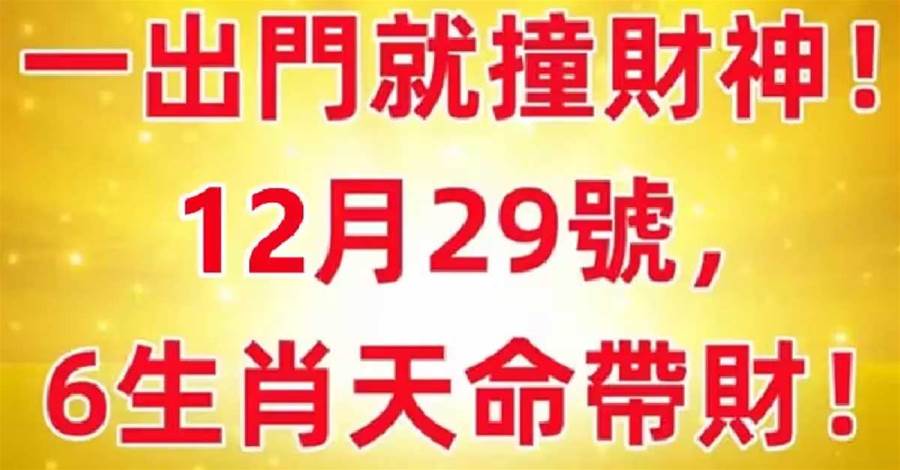 一出門就撞財神!12月29號,六生肖天命帶財!!