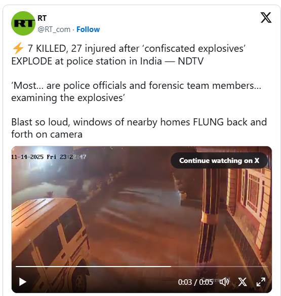 警方在偵辦10日于德里紅堡發生的汽車炸彈攻擊時,14日晚間將查扣的爆裂物帶回警局進行鑑識,豈料這批證物竟在局內突然引爆,熊熊火勢瞬間席捲整棟建築,導致至少9名執勤警員及鑑識專家不幸罹難。