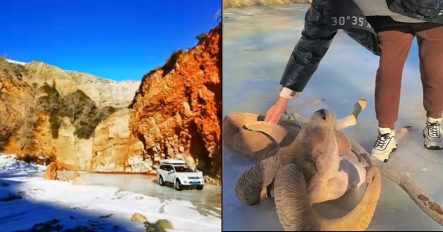 女子新疆自駕游,發現一只羊「凍僵冰中」心疼撫摸,網友急喊:不要碰!
