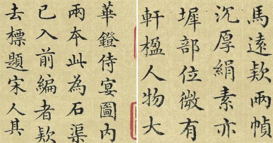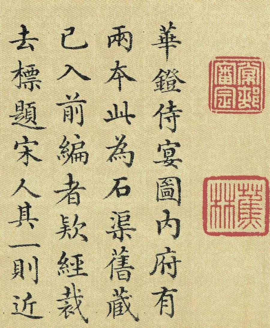 清代董誥楷書題華燈侍宴圖,絹本,台北故宮博物院藏。