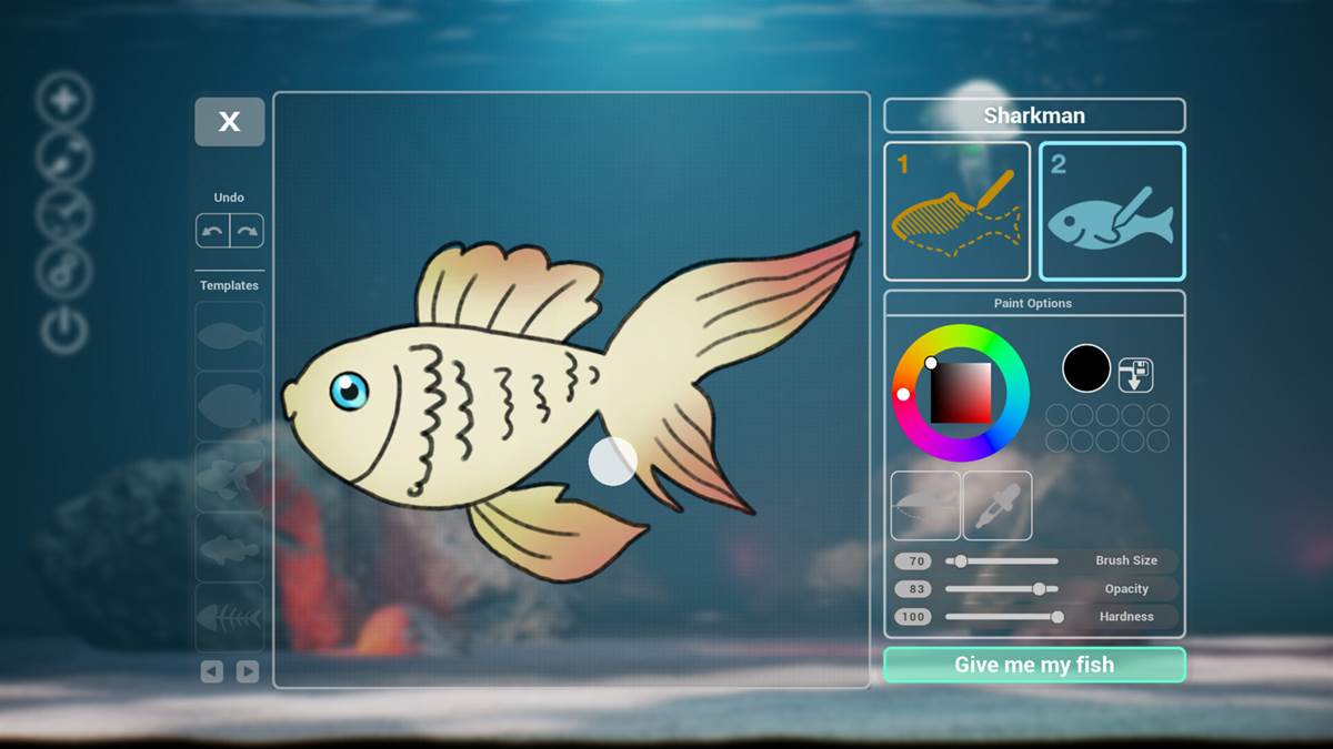 除了水中生物之外,玩家也可以繪製巖石、城堡、潛水艇、太空船等,任何你想到的東西。隨著遊戲推進,玩家將可以解鎖更多魚缸自訂內容,包含沙子顏色、漂流木、燈光等,水族箱將變成一個微縮世界,充滿你自己創造的生物。