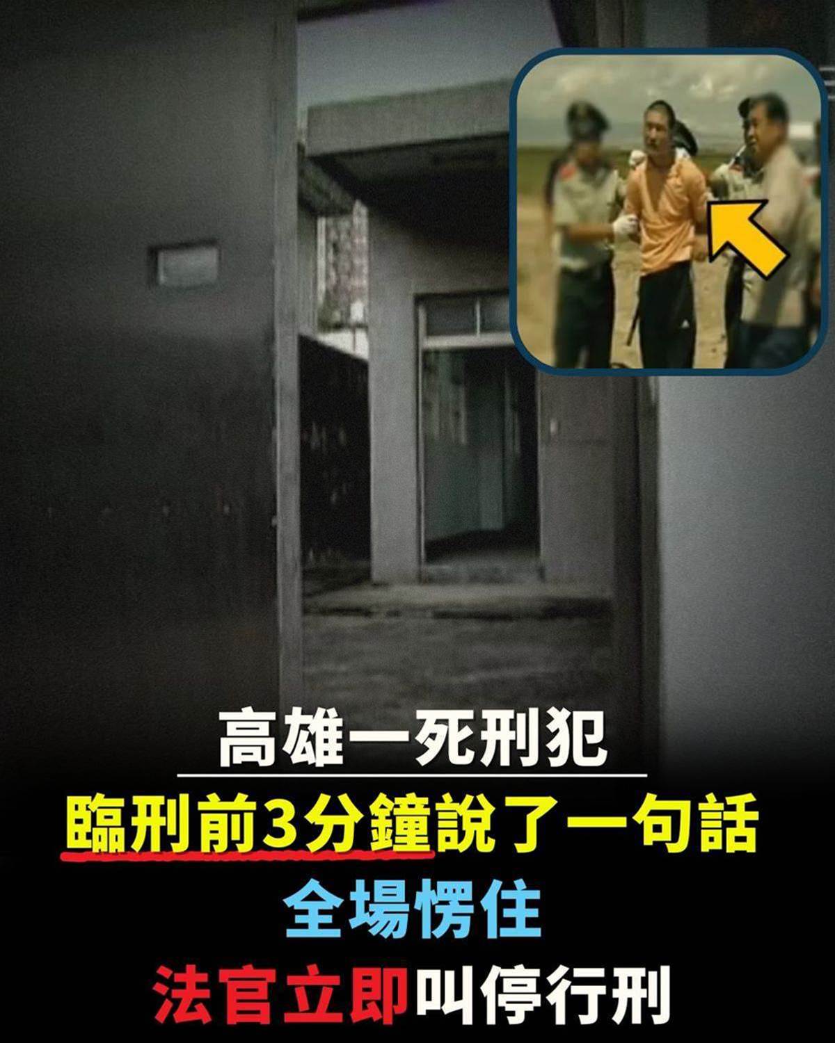高雄一刑犯臨刑前3分鐘說了一句話,在場眾人集體愣住,法官立即叫停行刑