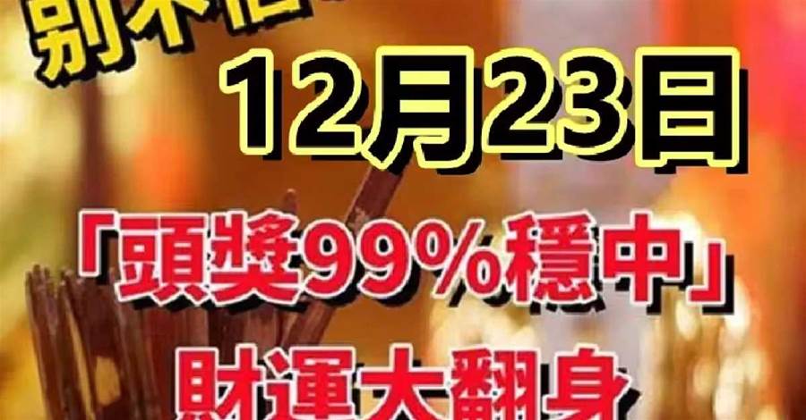 12月23日「頭獎99%穩中」財運大翻身,發家致富的生肖!!