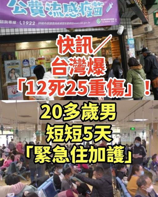 快訊/台灣爆「12死25重傷」!20多歲男短短5天「緊急住加護」