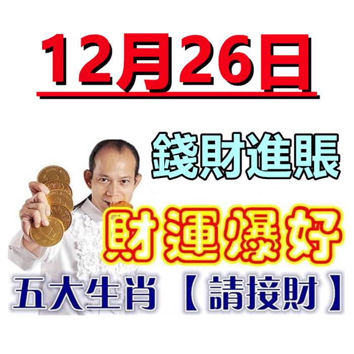 「 明天 12月26號 」 三生肖 橫財大旺