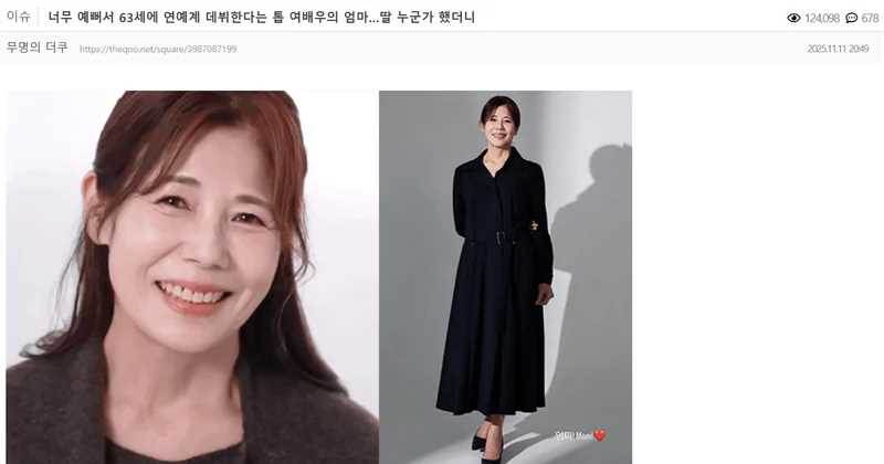 照片中,母親以自然笑容入鏡,清秀氣質引發網友高度關注,被形容與孝周如同「復製貼上」。
