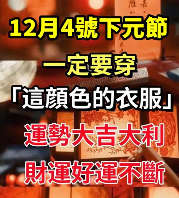 12月4號【下元節】一定要穿「這顔色的衣服」 運勢大吉大利,財運好運不斷