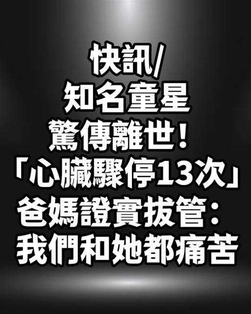 快訊/知名童星驚傳離世!「心臟驟停13次」爸媽證實拔管:我們和她都痛苦