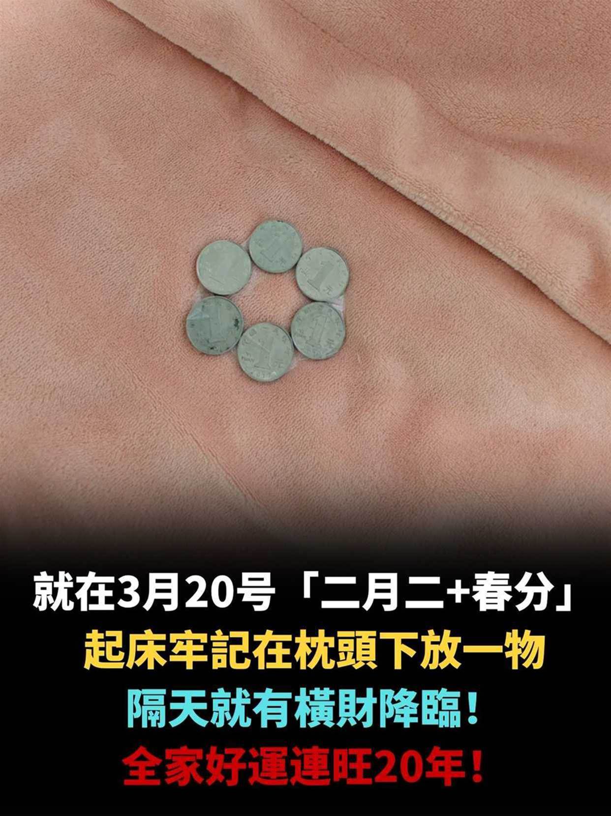3 月 20 號,農歷二月二龍抬頭撞上春分,十九年一遇的雙吉臨門,陰陽平衡、龍氣升騰,正是全年最旺的開運節點。老輩人說這天做對一件事,能把財氣、福氣牢牢鎖進家門,不是迷信,是順應天時的旺運秘法 —— 起床后在枕頭下放一枚干凈的一元硬幣,簡單一招,隔天就有橫財上門,全家好運連旺 20 年!