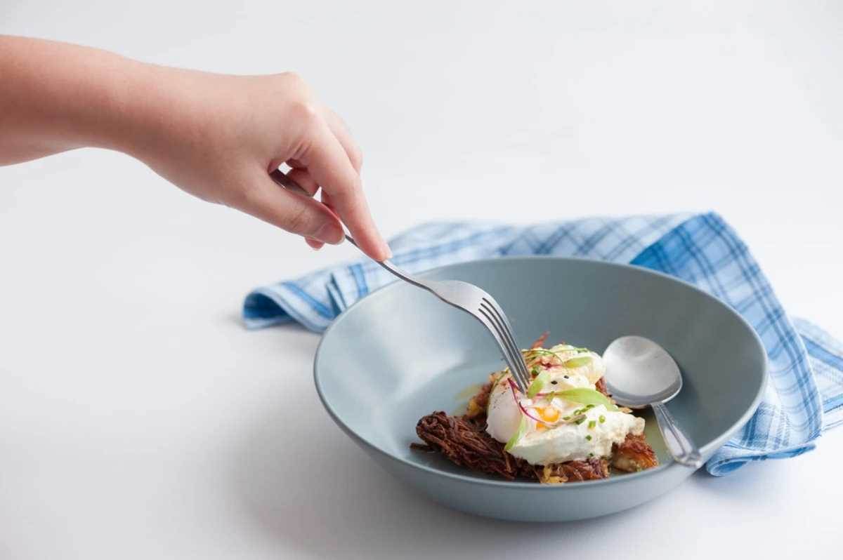 顧名思義,就是用平常不習慣的那隻手吃飯。舉例來說,如果你平常是右撇子,那就改用左手進食。