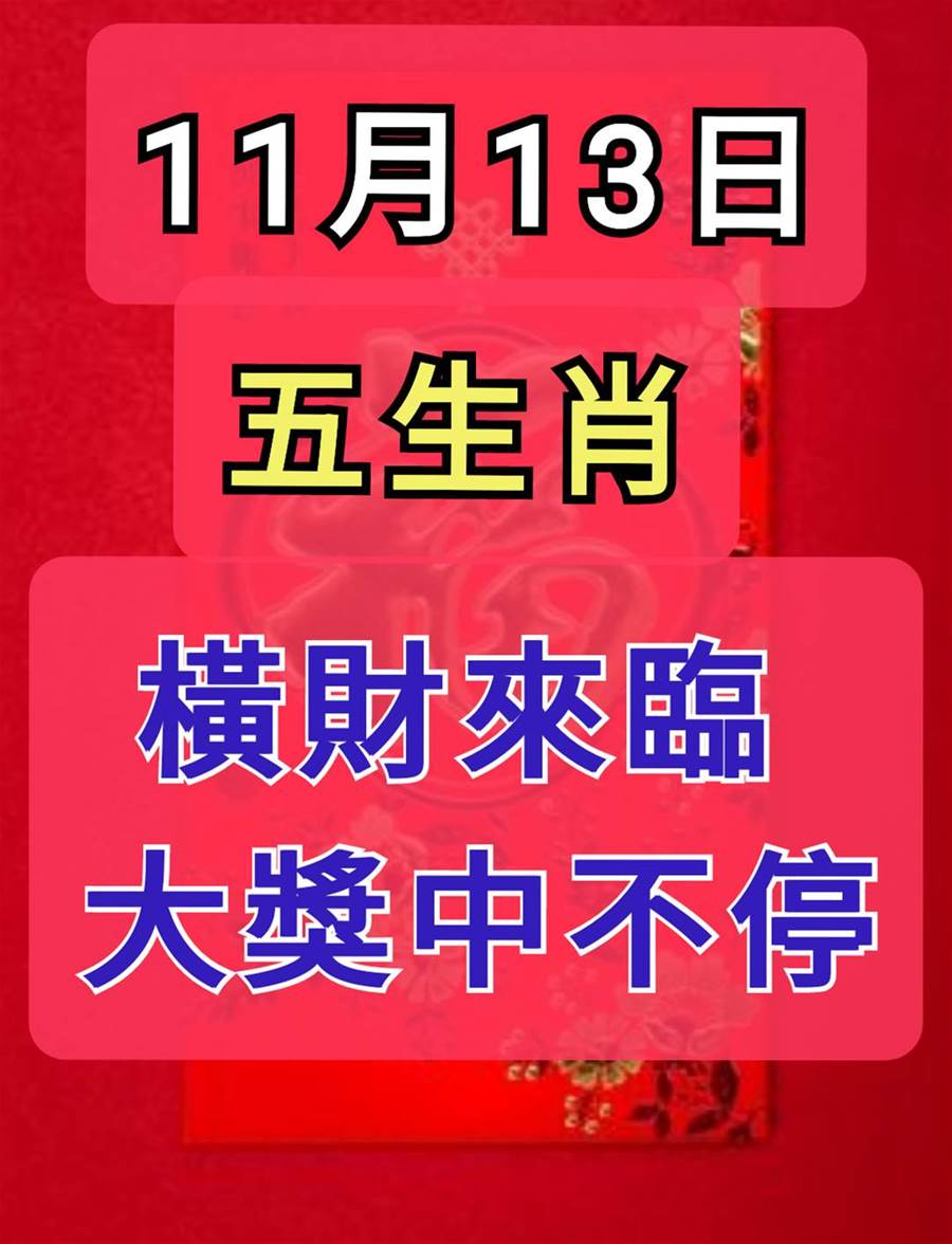 「 六大生肖 」 11月13 號逢獎必中, 14號 抬頭見喜, 15號 低頭撿鈔