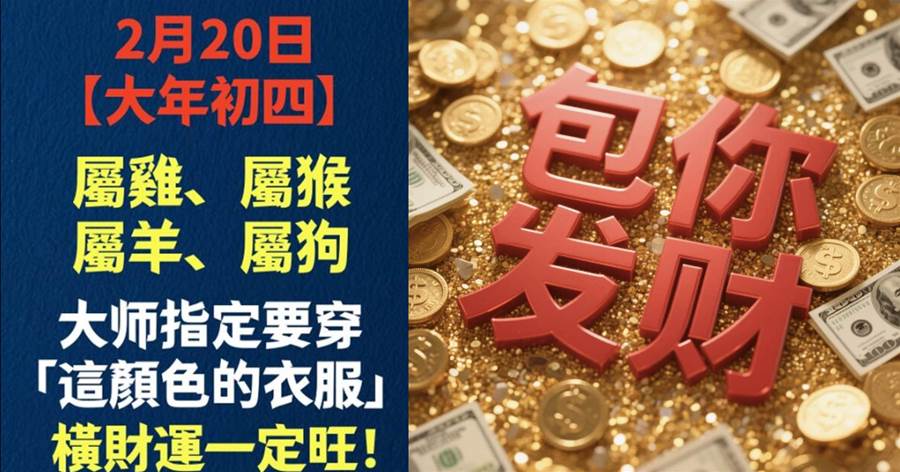2月20日【大年初四】屬雞、屬猴、屬羊、屬狗 大師指定要穿「這顏色的衣服」橫財運一定旺!