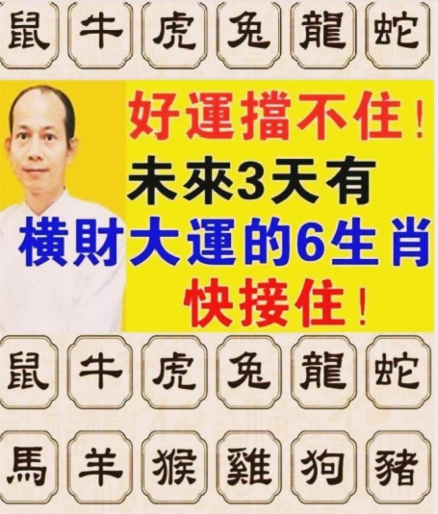 未來3天   六生肖   「  好運擋不住  」    有橫財大運